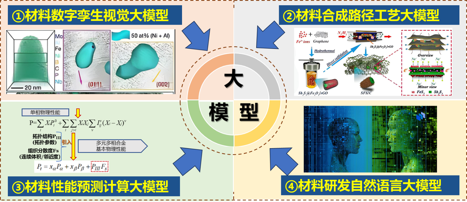 基于材料应用场景,构建材料数字孪生视觉大模型、材料合成路径工艺大模型、材料性能预测计算大模型、材料研发自然语言大模型,为大数据分析和机器学习提供多模态、多尺度、多数据源模型支撑,助力材料快速研发。